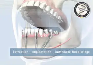 Fast & Fixed Bredent, una solución de implantes premium fabricada en Alemania, que permite colocar dientes fijos el mismo día de la intervención. Este tratamiento implica la extracción, la colocación de 4, 6 o 10 implantes y la restauración, todo en una única cirugía.